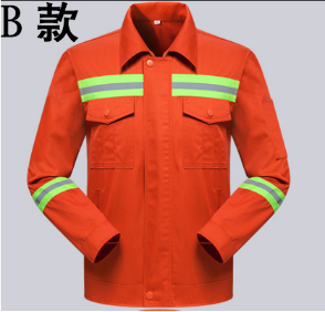 一线员工工作服主要是以亮色的橙色的为主,衣服的反光条的多处设计。