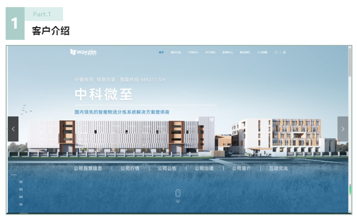中科微至科科股份有限公司是科技创新企业,是国内智能物流分拣系统领域领先的综合解决方案提供商。在中国科学院的支持下,公司建有“智能物流装备与机器人产业研究院”,在图像处理、人工智能、机器人技术、智能制造等领域聚集了一大批高素质研发人员。目前的客户涵盖中通、顺丰、百世、申通、极兔、韵达、中国邮政、苏宁、德邦、圆通、唯品会等国内主要快递、物流及电商企业,产品同时出口至泰国、印尼、菲律宾、新加坡等多个国家和地区。