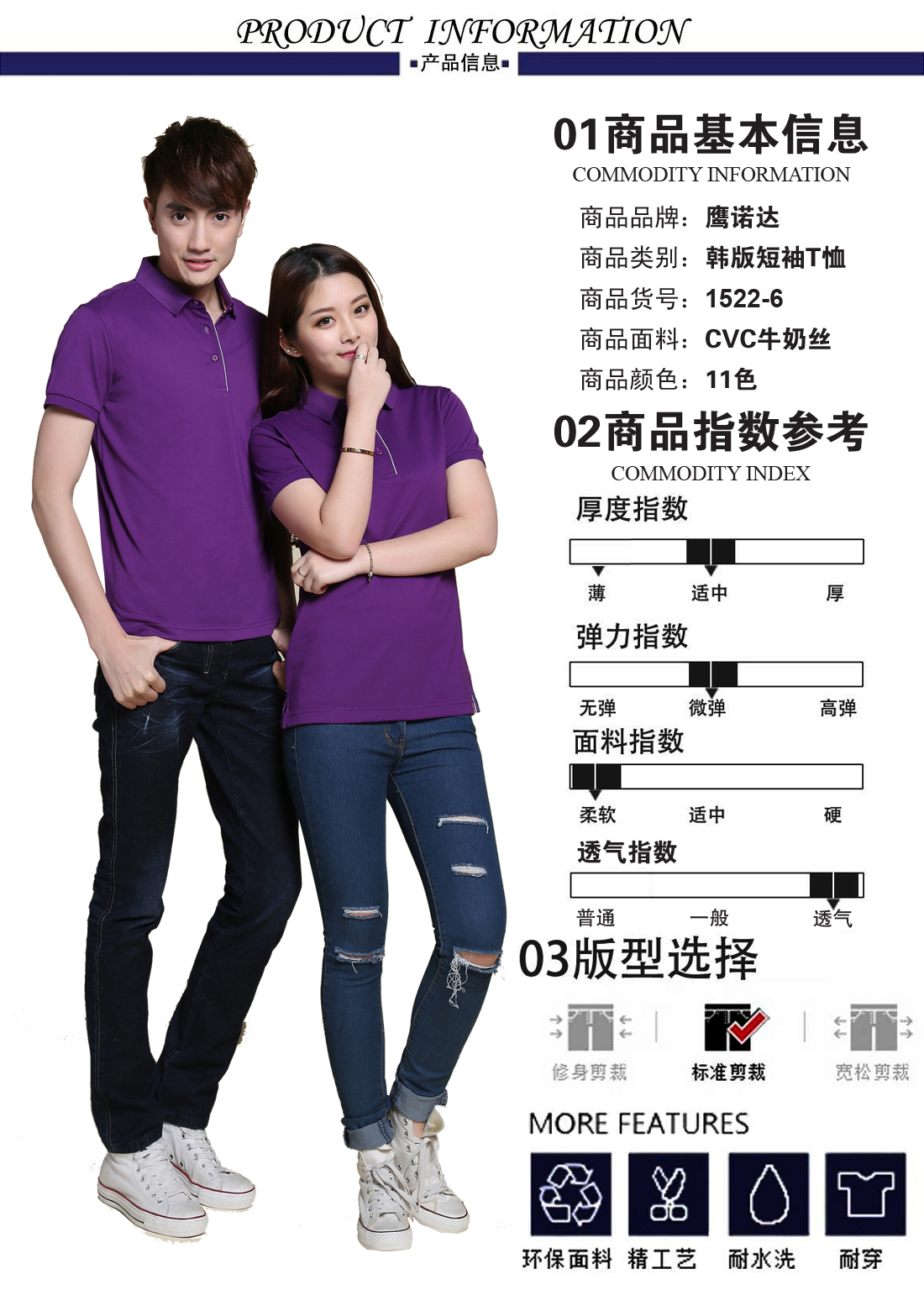 紫色翻领CVC牛奶丝T恤衫ID1522-6