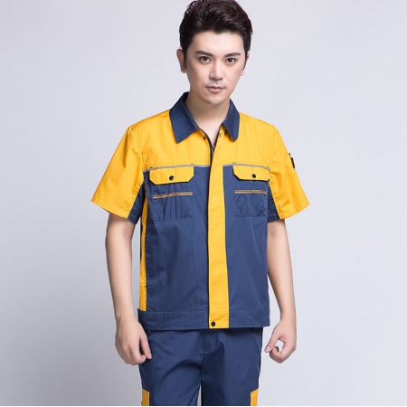 深蓝配桔红短袖工作服AD069