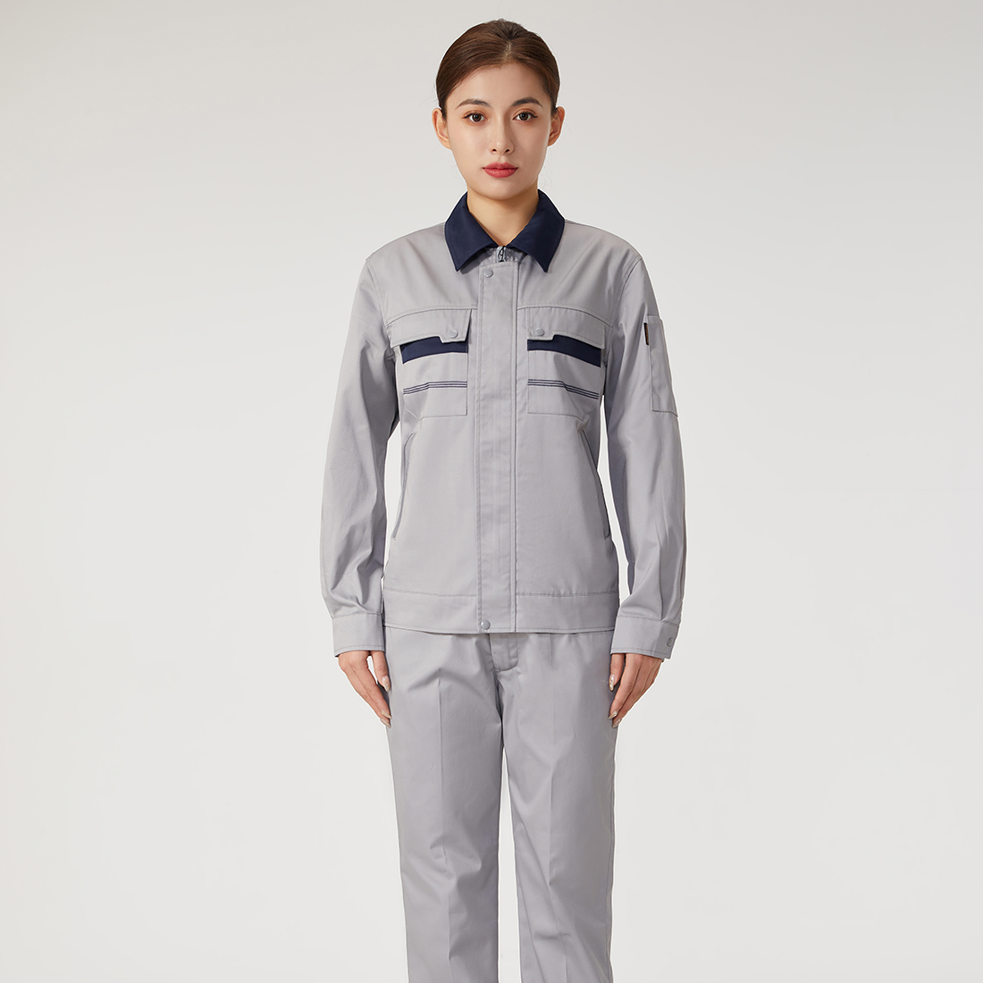 苏州鹰诺服装:铁灰拼浅灰工作服AC20-3