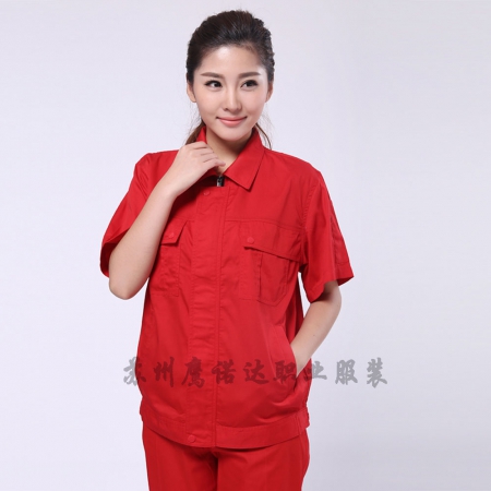苏州鹰诺服装:藏青拼大红夏季工作服AD103