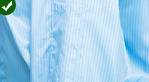 材料选用聚酯长丝纤维和进口全导电纤维混纺而成具有防静电,防尘,不吸尘,不掉屑的特点