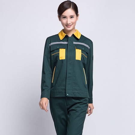 苏州鹰诺服装:墨绿拼黄色工作服AC09-3